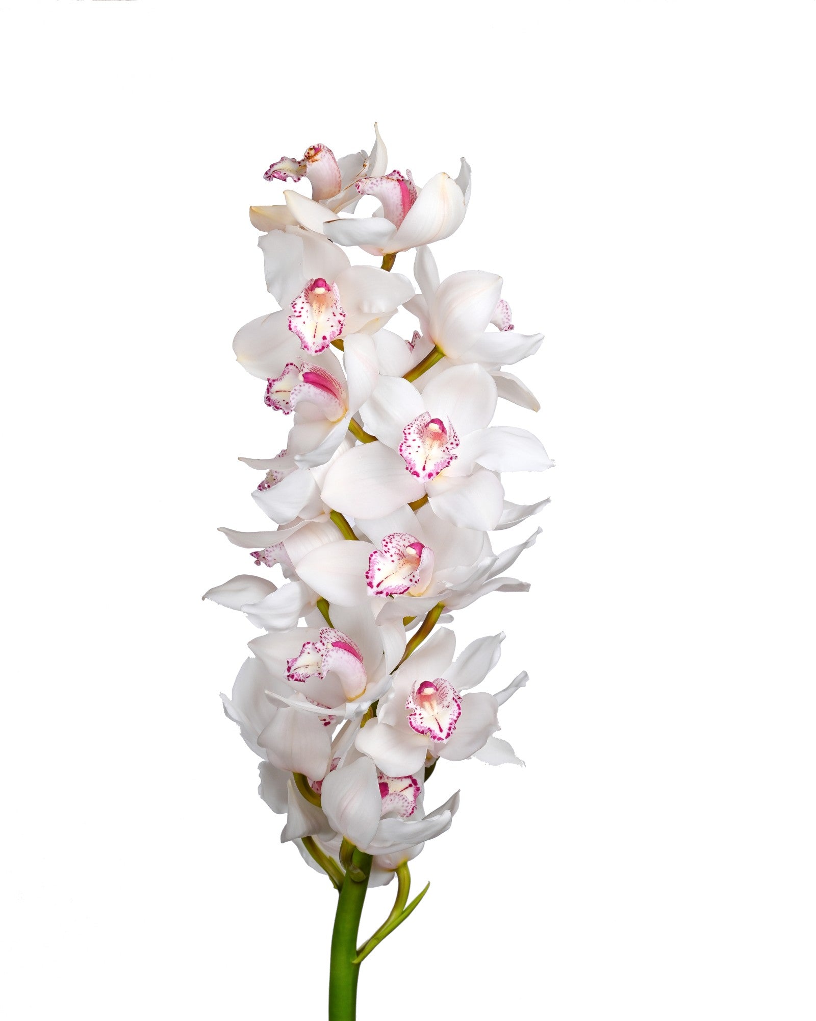 Introducing the elegant White Cymbidium Hybrid—nature's showstopper with pristine, creamy-white petals that steal the spotlight. This beauty features a delicate lip adorned with subtle yellow or red accents, adding just the right touch of personality. Perfect for those who want flowers that actually stick around, these blooms last impressively long, making them ideal for bouquets, corsages, or simply brightening your space.
