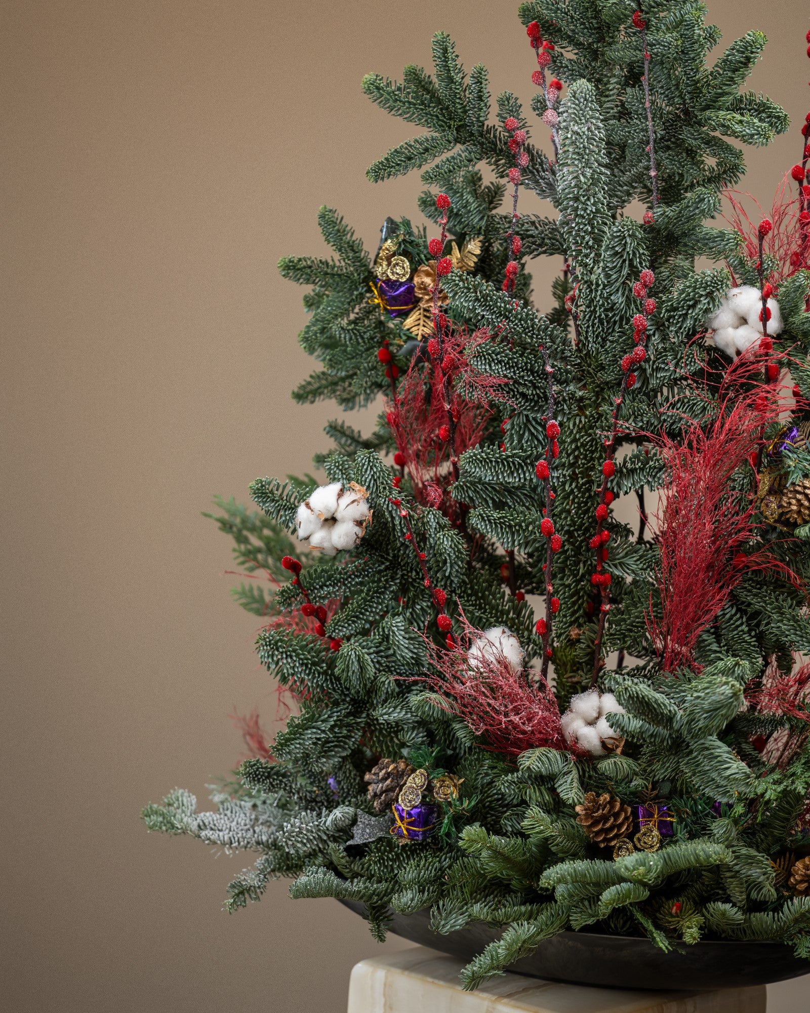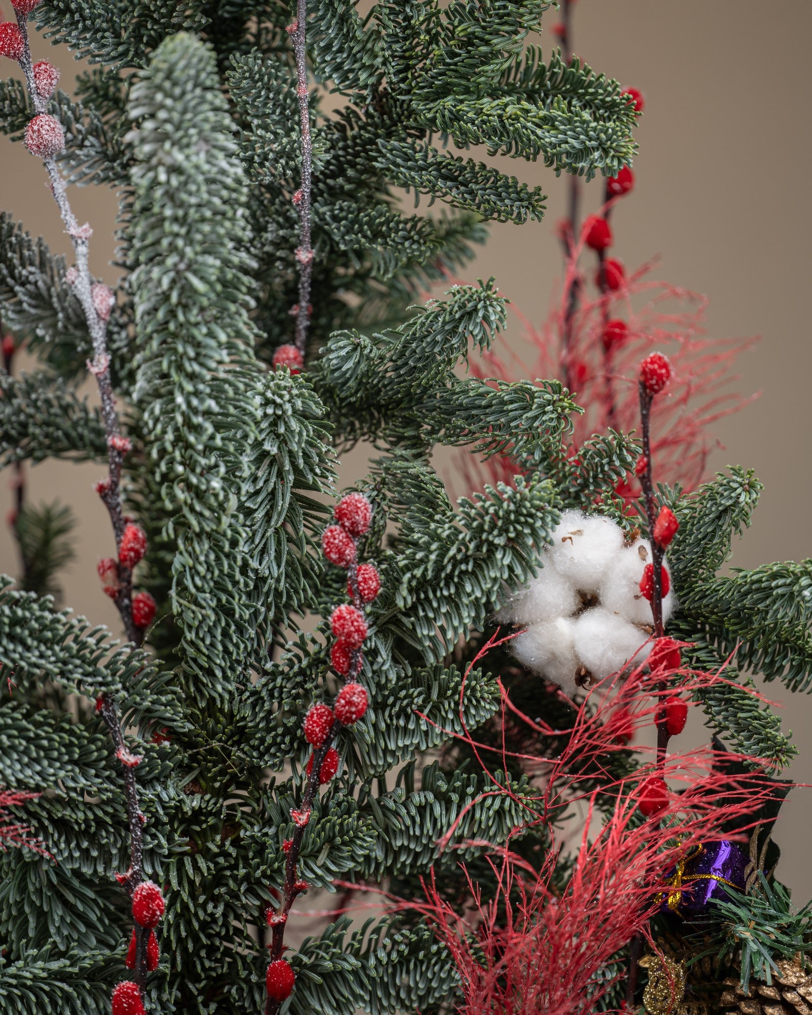 أضف الحيوية إلى ديكورك الشتوي مع ليانا، وهي باقة زهور راقية وحصرية مصممة لإضفاء لمسة من الفخامة على أي منزل. مصنوعة من أزهار الشتاء الرائعة والنباتات الخضراء الوفيرة، تتميز ليانا بالأناقة والرقي. من المؤكد أن جمالها المورق والفخم سيبهرك.
