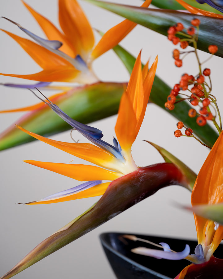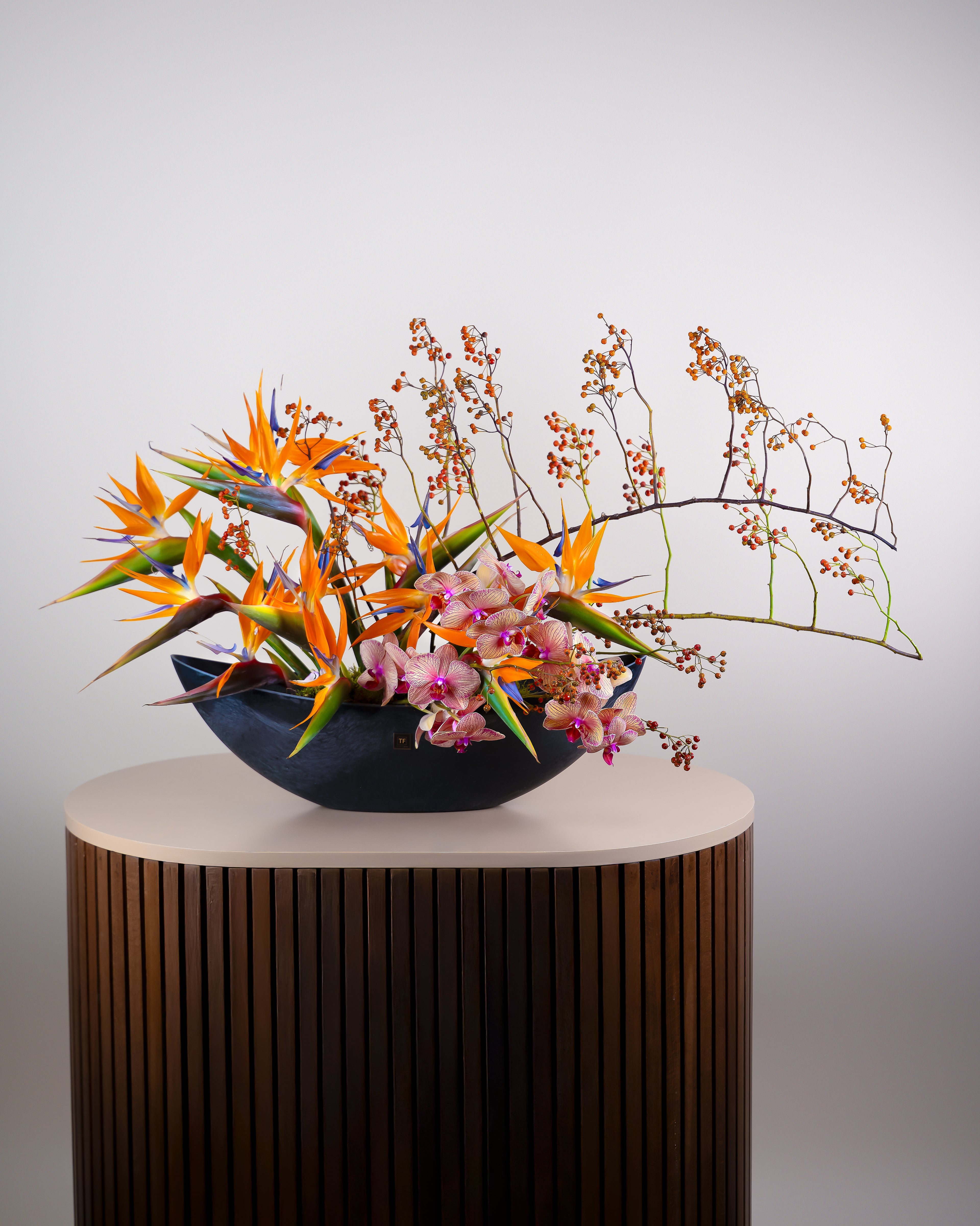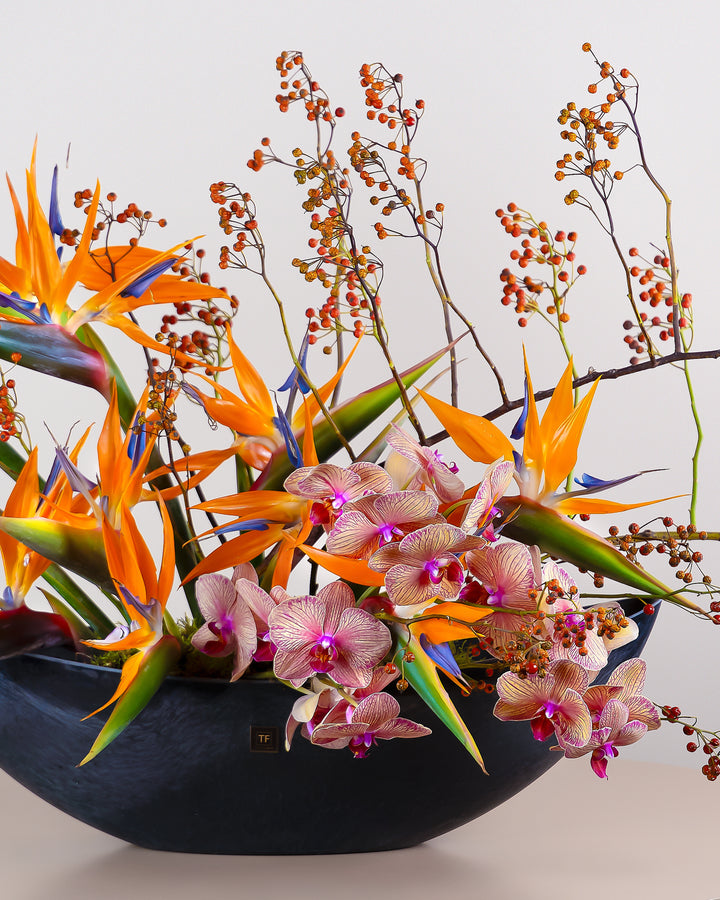 Bring the tropics home with Baltimore, a vibrant flowers arrangement featuring bright birds of paradise. This playful display mimics exotic birds in full flight, adding a splash of sunshine and whimsy to any space. Perfect for lifting spirits and sparking joy with its bold colors and lively design.