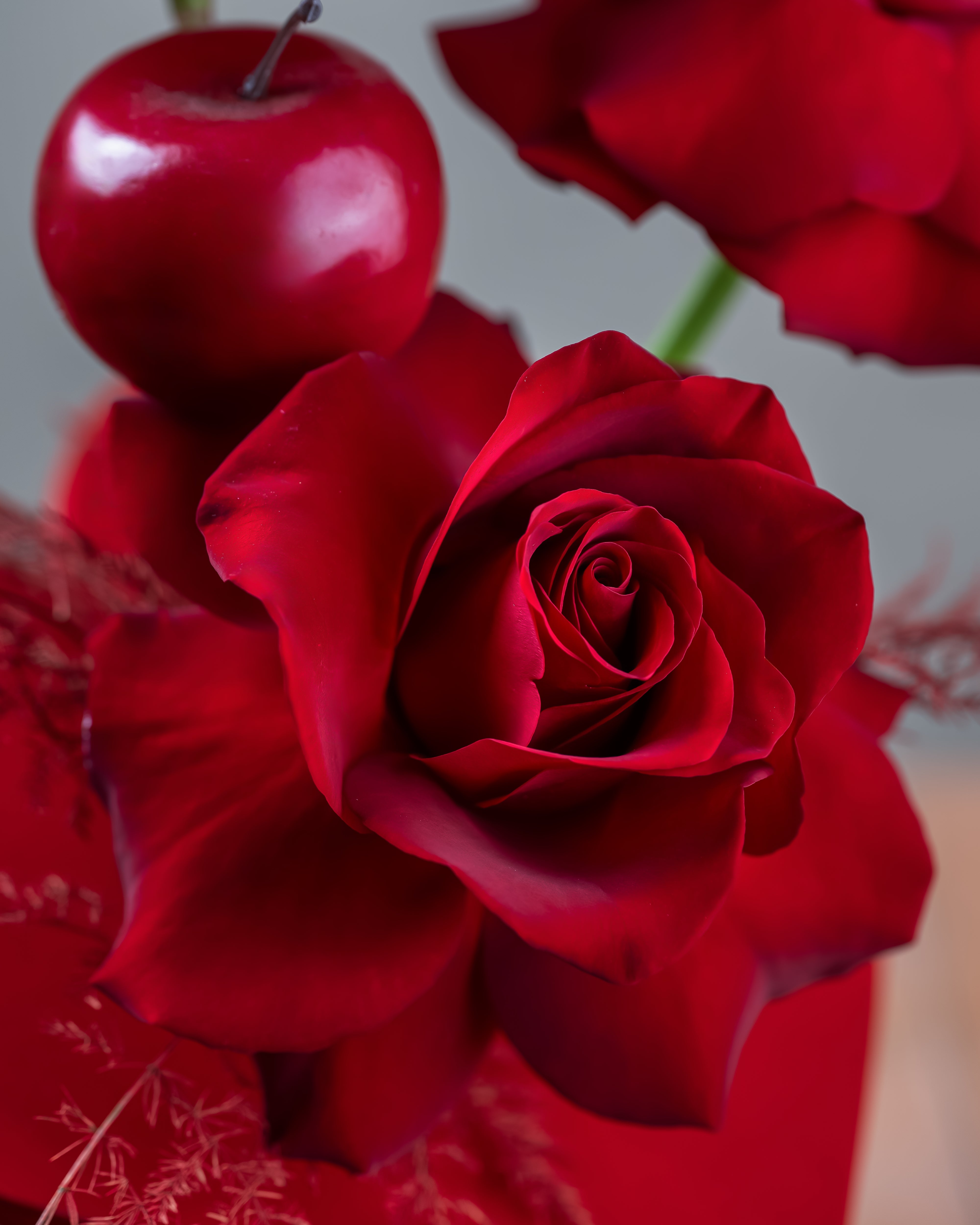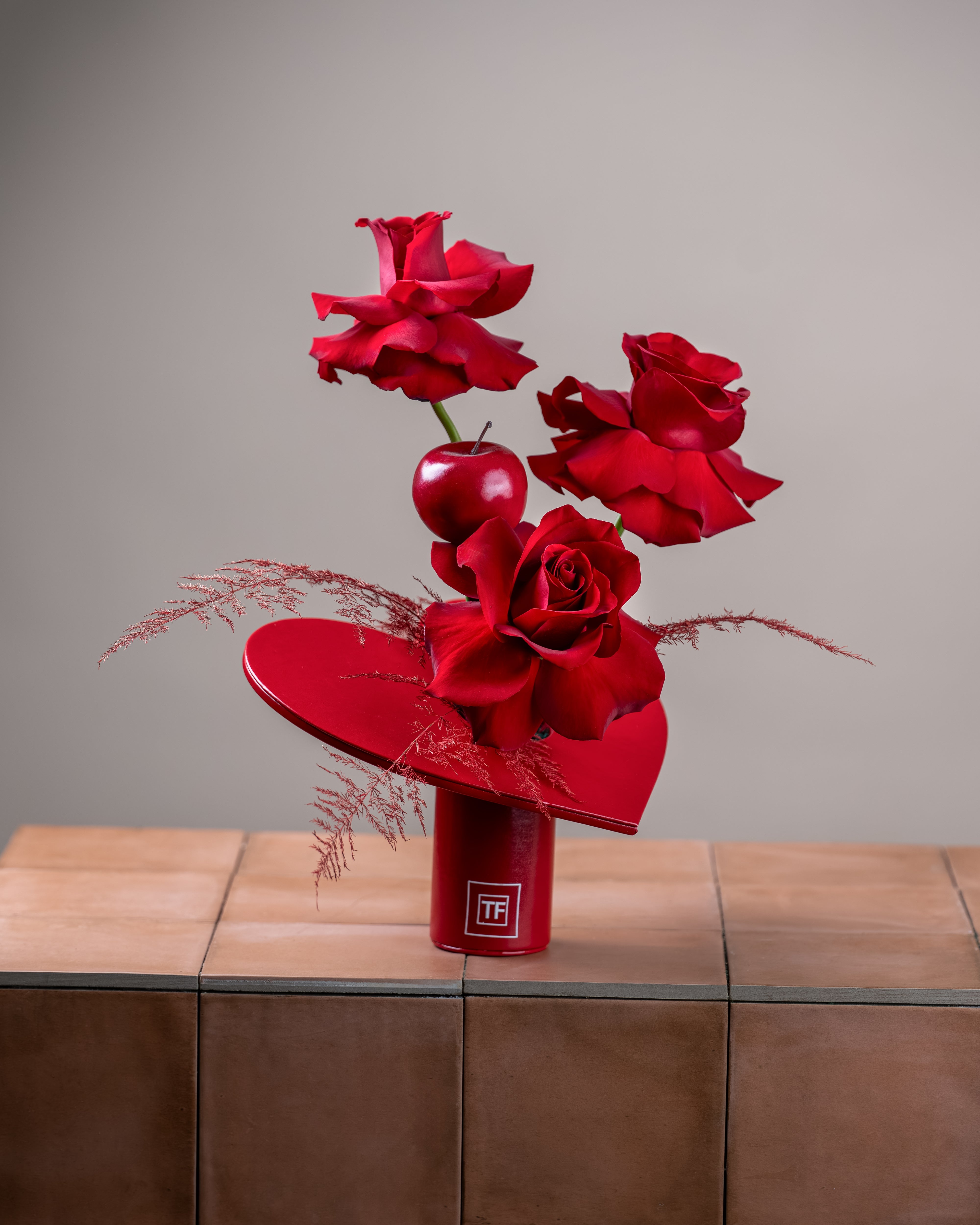 Elevate your Valentine's Day gesture with Eva, an exquisite arrangement that seamlessly blends romance and artistry. Featuring vibrant red roses paired with a striking artificial apple, this curated composition arrives in an elegant leather heart-shaped vase—a vessel as memorable as the sentiment it holds. The sophisticated design transcends traditional florals, offering a contemporary take on timeless affection. Perfect for those who appreciate refined aesthetics and meaningful gifts, Eva delivers both visual impact and lasting beauty without the complexities of fresh flower maintenance.