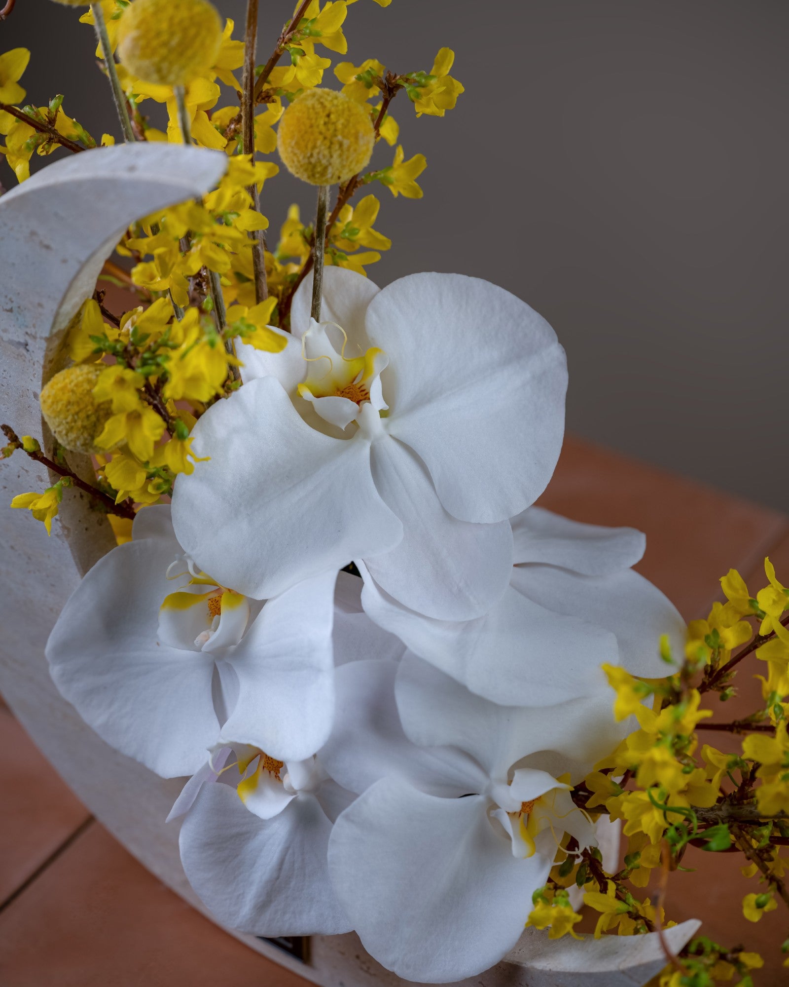 Moonlight Flowers captures the serene elegance of evening blooms in a carefully curated arrangement. This sophisticated composition features premium flowers selected for their luminous qualities and graceful forms, creating a striking centerpiece that commands attention in any space. Perfect for refined occasions or as a distinguished gift, this arrangement brings timeless beauty and understated luxury to your home or event.